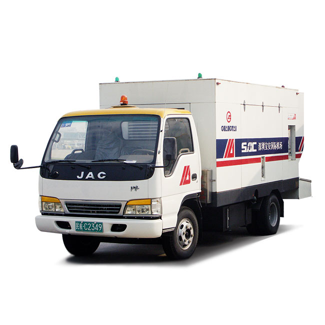 该类设备主要是通过输出低压、大流量压缩空气直接启动飞机发动机,也可给飞机进行辅助供气,用于飞机检查或空调。该设备由汽车底盘、压缩机机组、罩壳总成、供气总成和电气系统组成。
